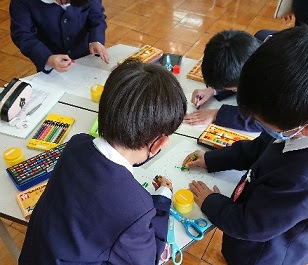 1階の掲示板に飾る作品づくりです。
