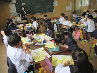授業の終わりだったので、ふりかえりカードを書いていました。